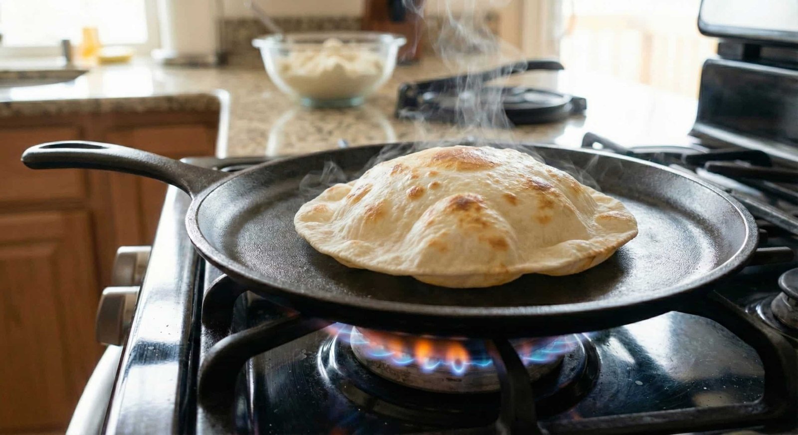Warning: Tortillas will often bubble and puff up!
